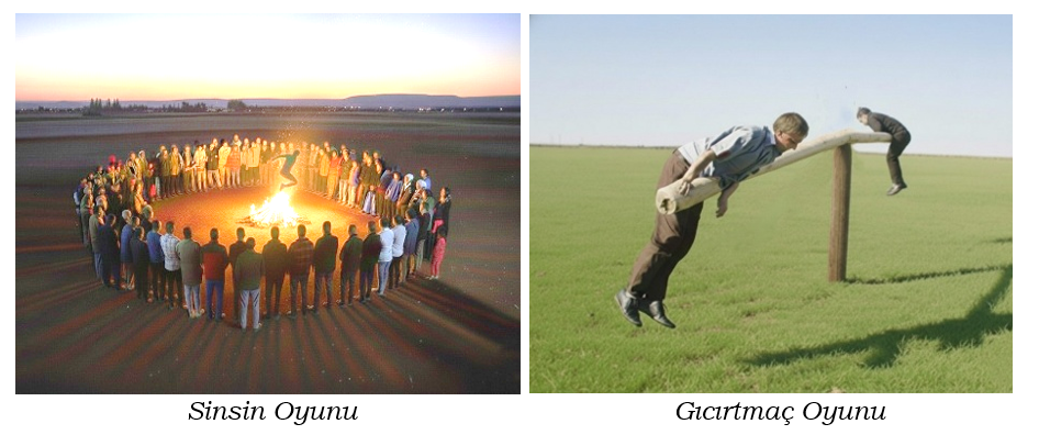 Bu oyun, köy düğünlerinin devamında geceleri geniş ve açık bir alanda, ateş etrafında toplu halde oynanır.Bu oyun için toplanan köyün gençleri, önce harman yeri gibi bir yerde ortaya büyük bir ateş yakarlar. Sonra da bu ateşin etrafında genişçe bir halka oluştururlar. Ortada oynayacak oyuncular, halkanın arasına dağınık şekilde yerleşirler. Bu oyunculardan birisi, meydana çıkar ve sırtı ateşe dönük olarak, davul-zurna eşliğinde, ritmik ve hızlı hareketlerle diğer oyunculara çalım atarak ateşin etrafında oynar. Bu oyuncu ara ara da ateşin üstünden atlar. Halkanın içinde bulunan oyunculardan başka biri de ortada oynayan oyuncuyu oyun alanından uzaklaştırmak için üzerine doğru seğirtir. Diğer oyuncular da sırayla oyuna girip aynı şekilde oynarlar. Oyun, ateş sönünceye kadar devam eder. Bu oyun, günümüzde artık pek oynanmamaktadır.